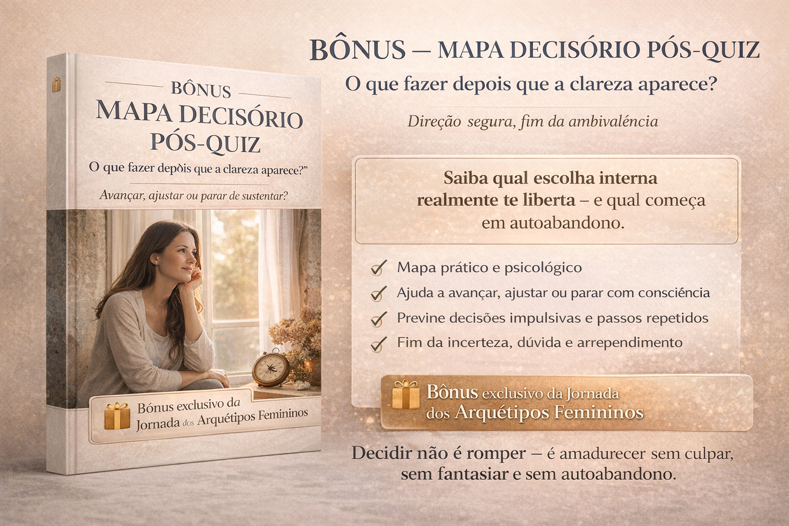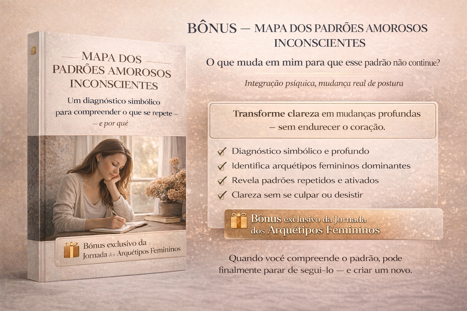 Antes de criar a Jornada dos Arquétipos Femininos para Relacionamentos Amorosos, percorri anos de terapia, estudos e formações. Entendi muito, mas percebi que compreensão sem posicionamento não muda o padrão.